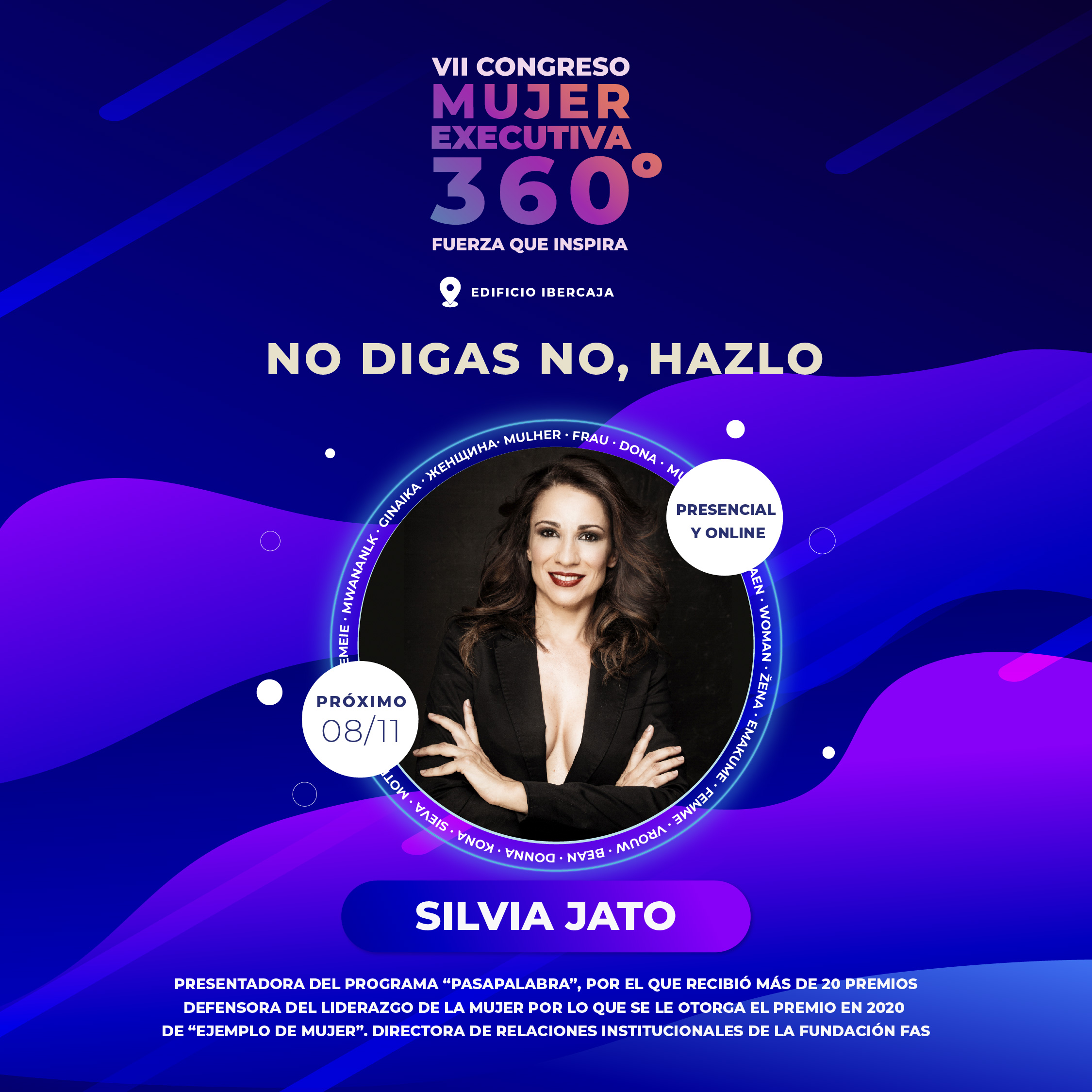 SILVIA JATO. PRESENTADORA DEL PROGRAMA“PASAPALABRA”. DEFENSORA DEL LIDERAZGO FEMENINO POR LO QUE SE LE OTORGA EL PREMIO EN 2020 DE “EJEMPLO DE MUJER”. DIRECTORA DE RELACIONES INSTITUCIONALES DE LA FUNDACIÓN FAS.